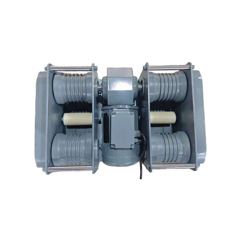La máquina es accionada por un motorreductor de ángulo recto, con una Estructura compacta y funcionamiento suave.. Combinado con un Diseño de transmisión por fricción de doble tambor de doble lado, permite salida sincronizada de doble cuerda, garantizando eficazmente Distribución equilibrada de la carga y funcionamiento uniforme.