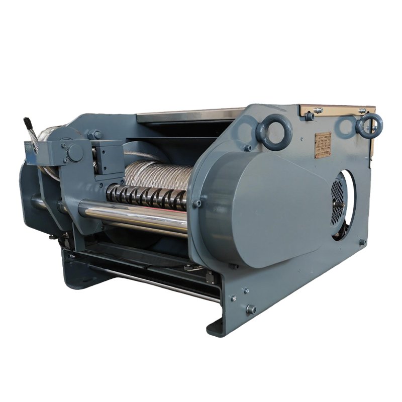 This winch features a compact design with a geared motor and drum arranged side by side, paired with a reciprocating lead screw rope guide to ensure neat rope arrangement.